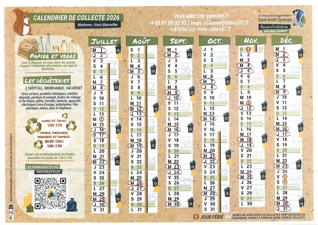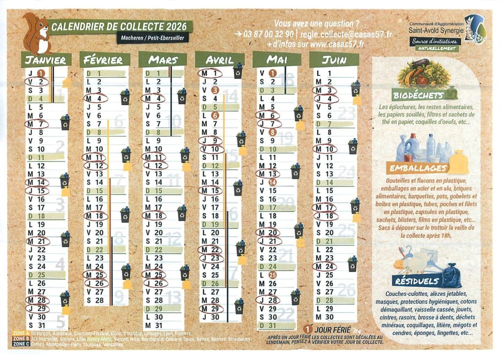 CALENDRIER DE COLLECTE SACS MULTIFLUX 2026