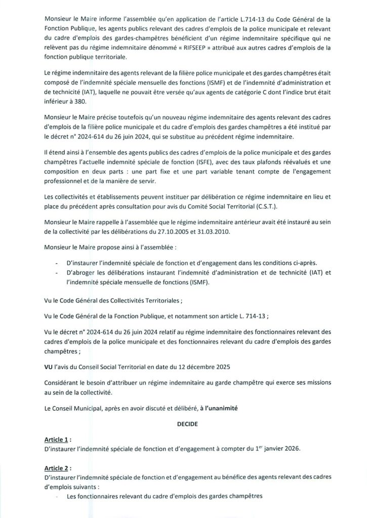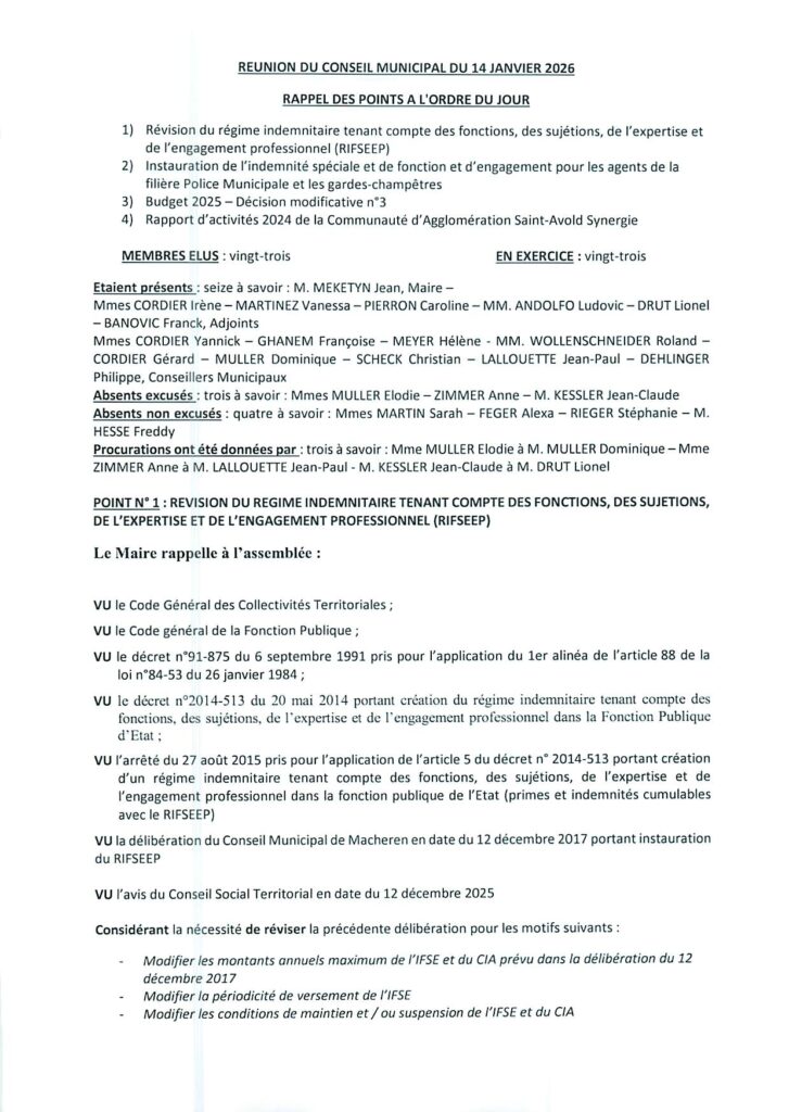 Compte-rendu du Conseil Municipal du 14.01.2026
